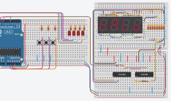 Starte die Simulation und beobachte die 7-Segmente-Anzeige.