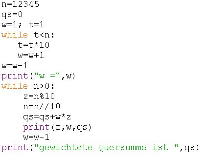 gewichtete Quersumme bei bekannter Wichtungsfolge!