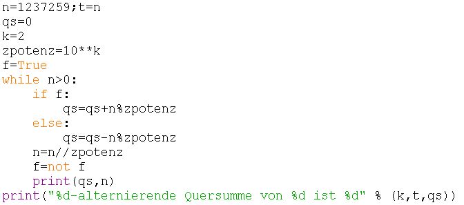 (nicht) alternierende k-Quersumme!